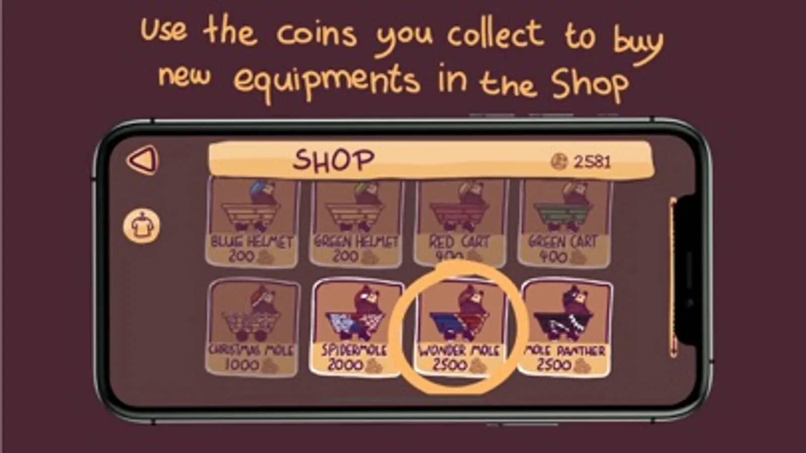Jump obstacles, collect coins, slow down time, beat your best score and buy the coolest equipments for your mole! With each update new amazing equipments will be added!