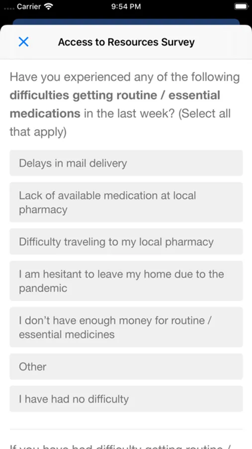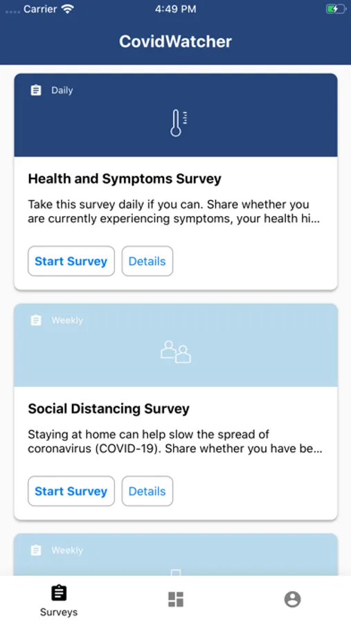 - We will ask you to answer daily or weekly surveys about your health status, your emotional wellbeing, and a range of other aspects of your daily life, such as your employment status and resources you need access to.