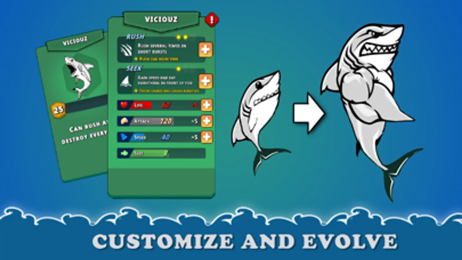 - Evolve your fish with new unique abilities, increase your stats and grow in size