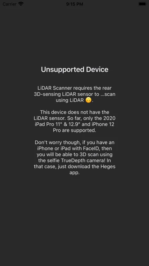 This app needs the LiDAR sensor to create 3D scans.