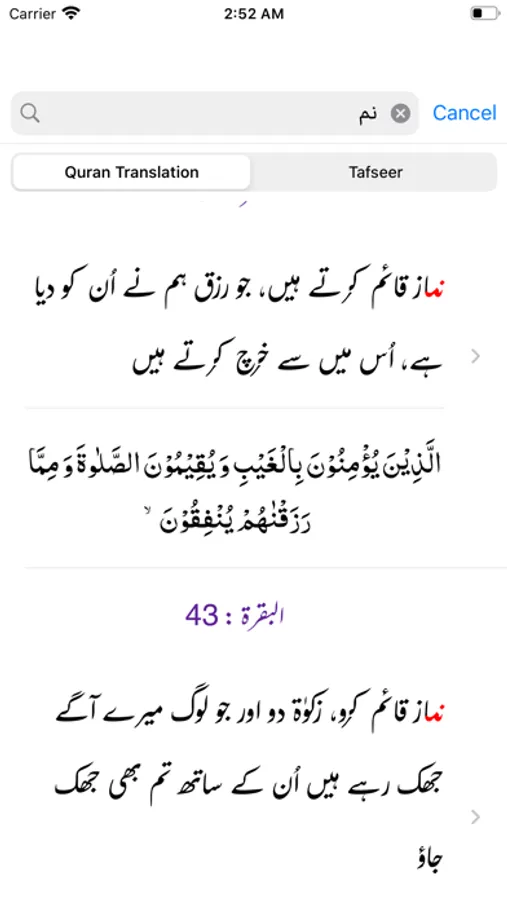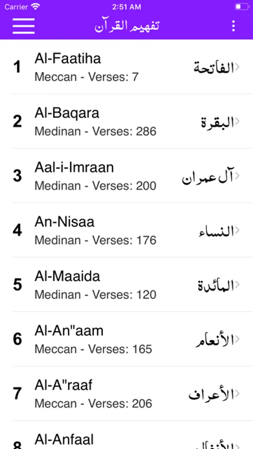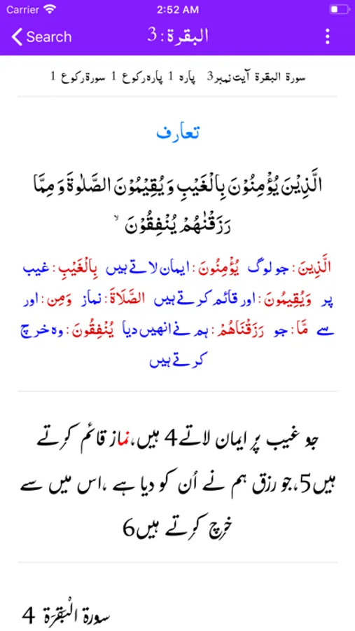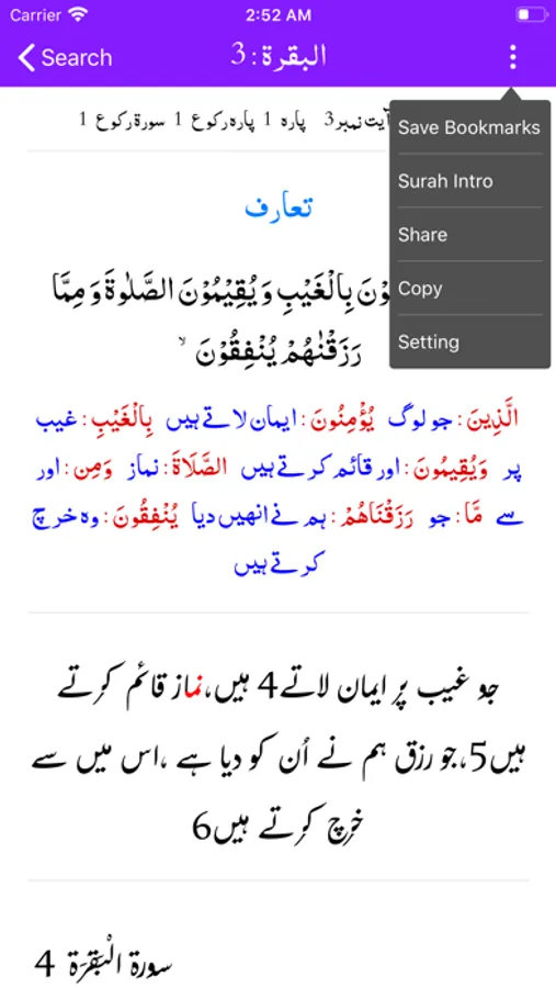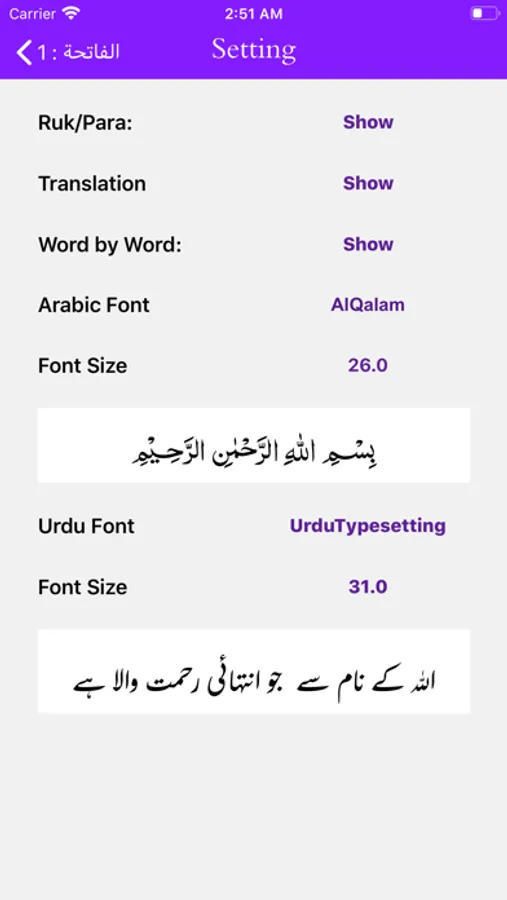Now user can Read full Sarah without translation in "Mushaf Mode"