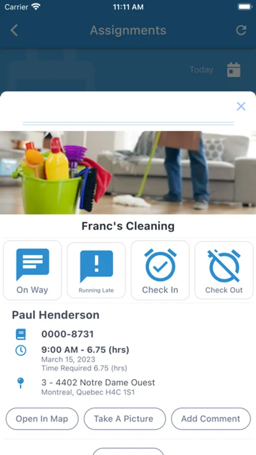 Notify your office when you are on your way and running late. Check in and out to easily track your time on the job.