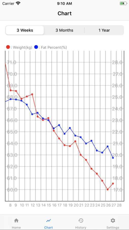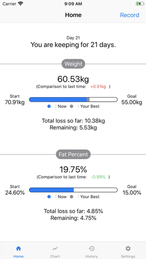 This app helps you lose weight. You can record your weight easily and its chart shows your weight loss.