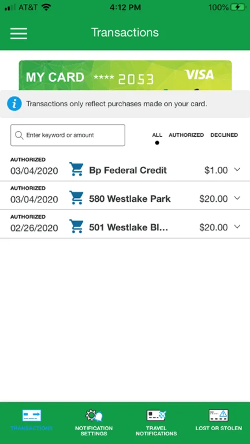 • View recent and pending transactions.