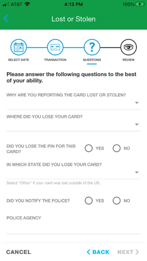 • Report your card lost or stolen.