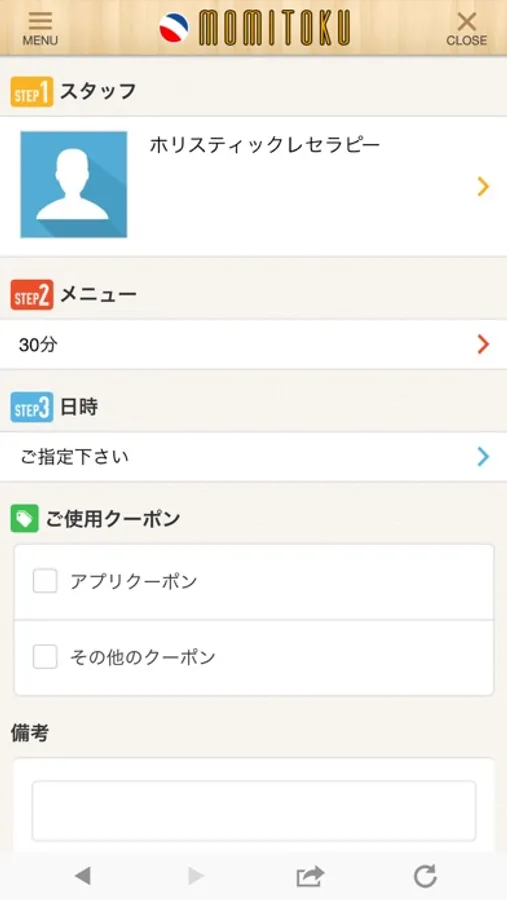 希望のメニュー・日時を指定して送信するだけで予約を依頼できます。