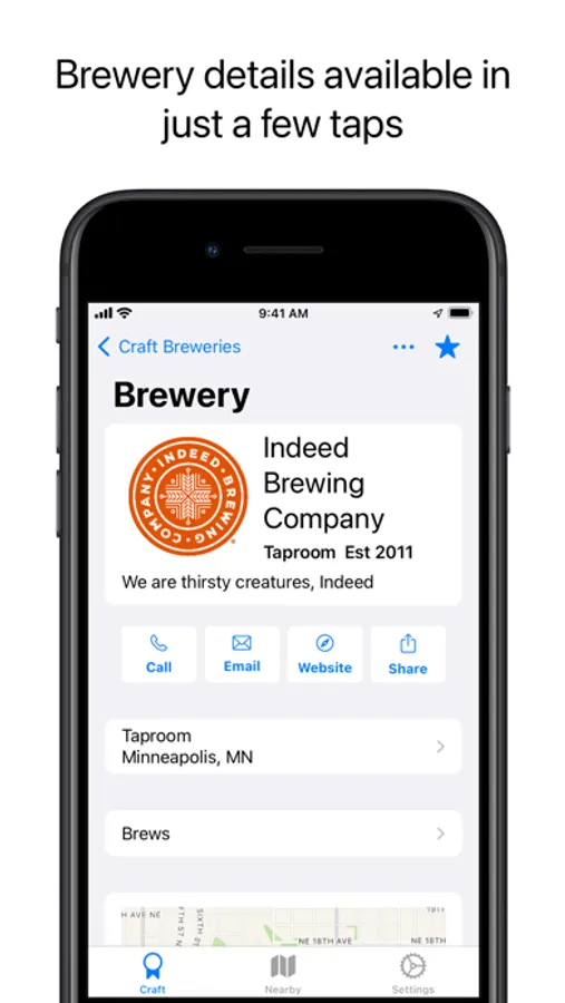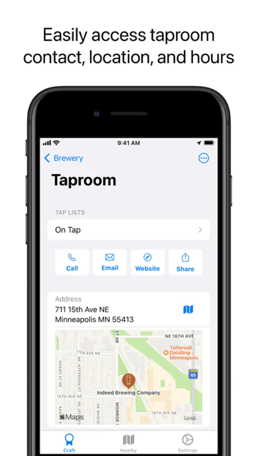 • Check out taproom details like hours, tap lists, and more in a familiar and consistent way.