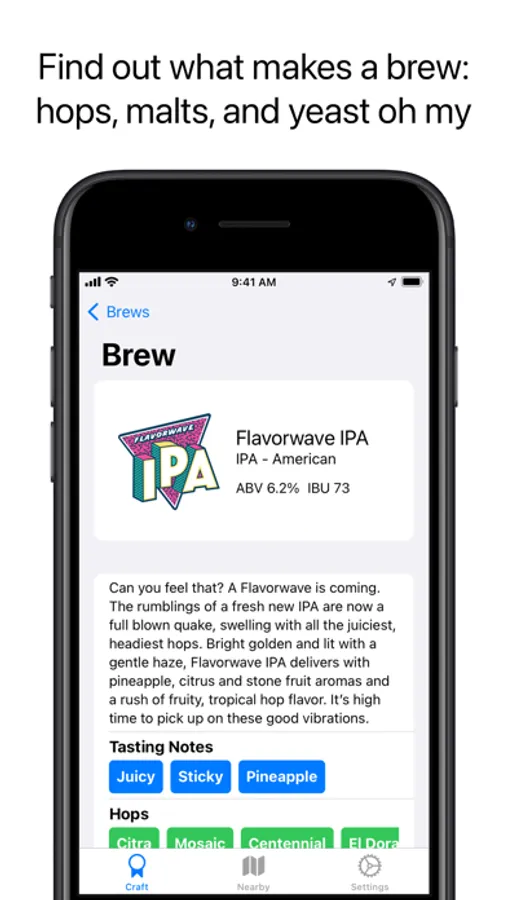 The Craft Experience is an app for craft brewery enthusiasts that helps you plan your next craft adventure. No account necessary, just install and launch the craft experience. We like craft beer, we make craft beer, and we make apps.