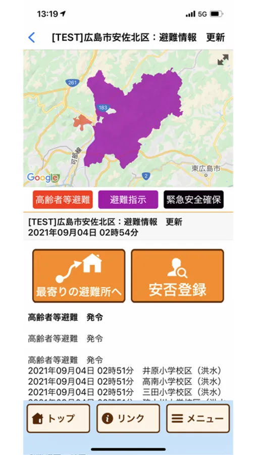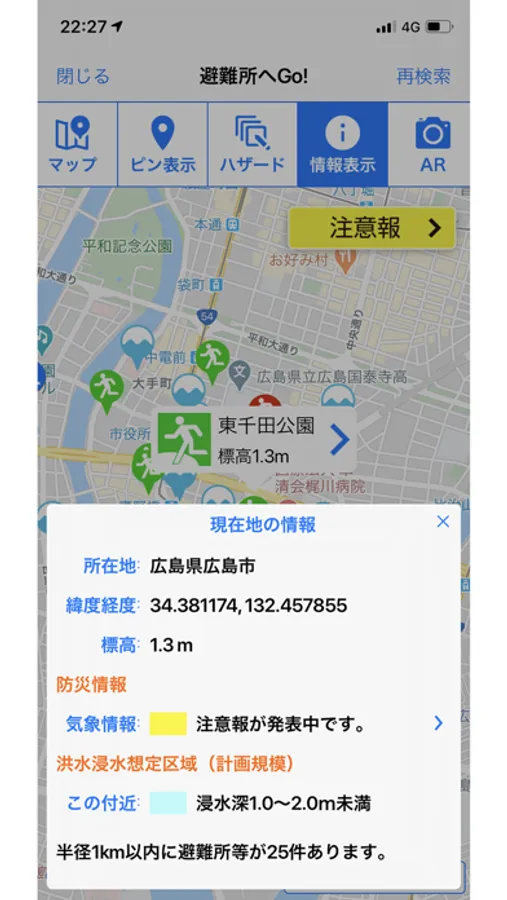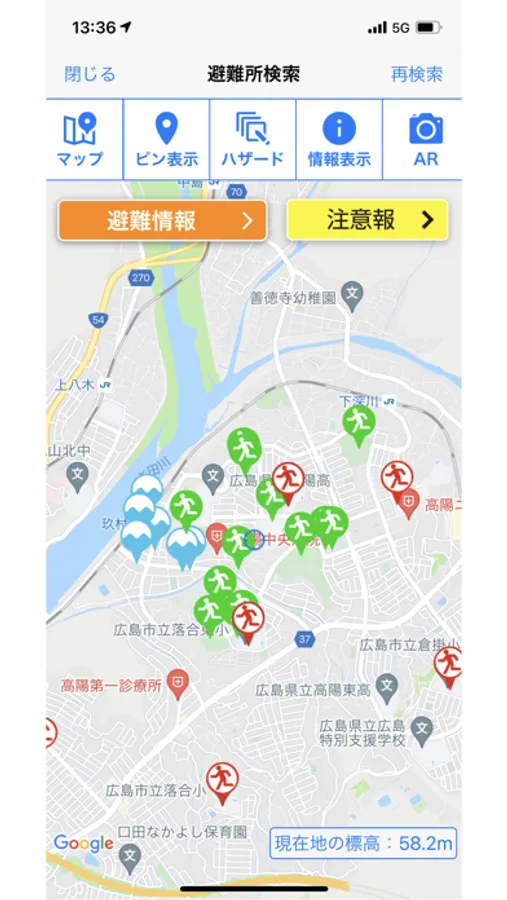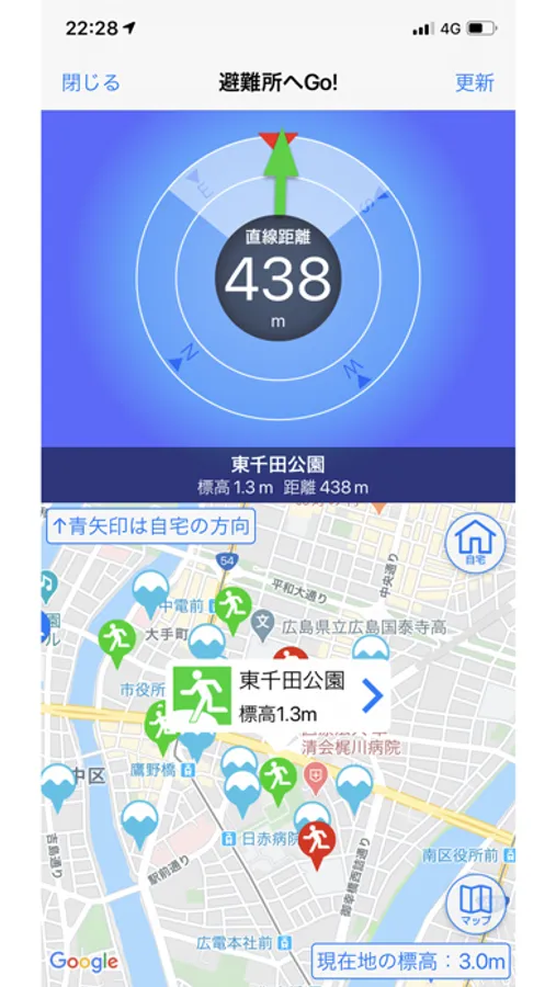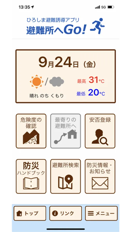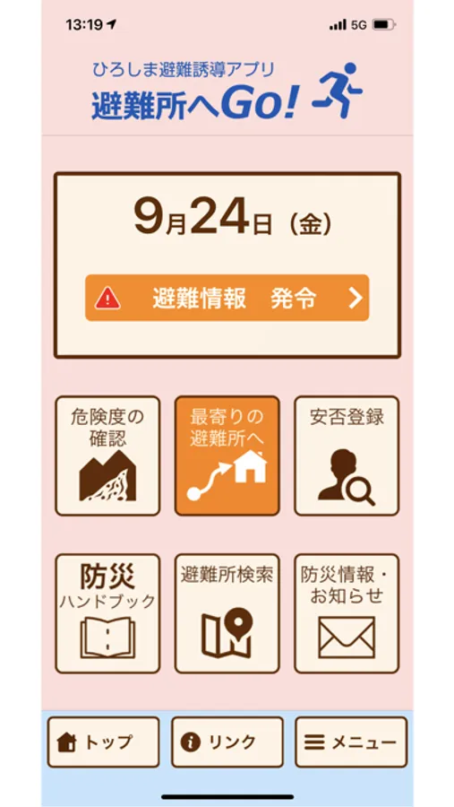 「避難所へGo!」は広島市と周辺市町が運用する公式防災アプリです。