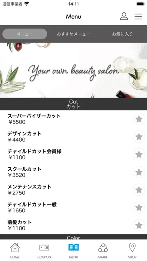 サロンで使用できるお得なクーポンが、アプリを通して発行され、ご利用いただけます。