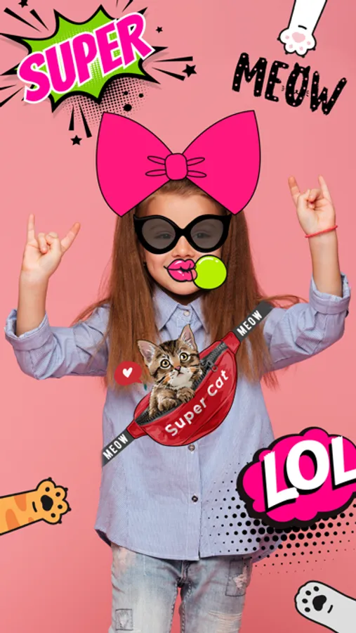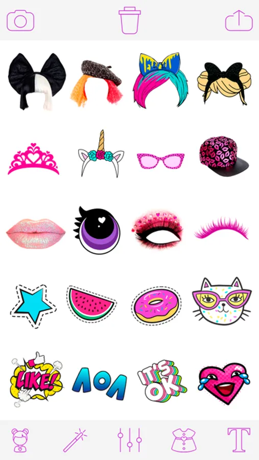 - Use our perfect collection of stickers: hairstyles, makeup, funny captions, backgrounds and art effects