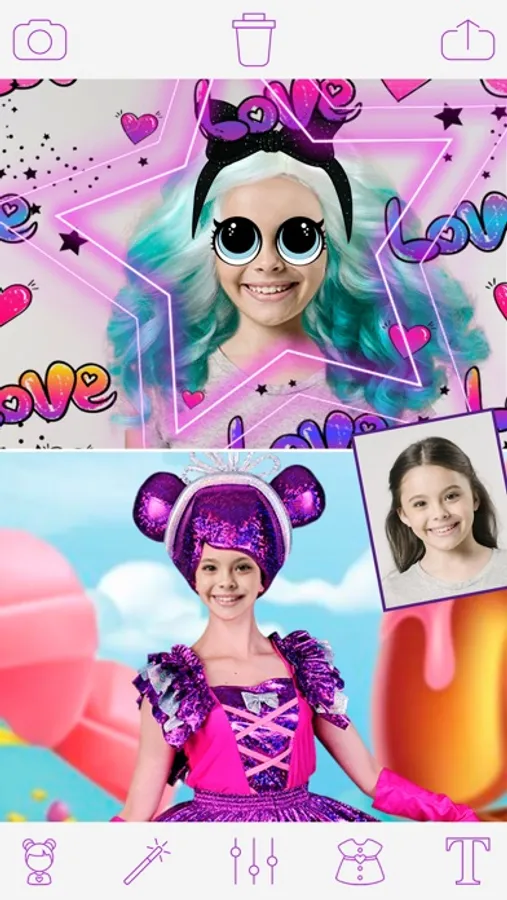 Fashion dolls photo editor is perfect app for lovers of everything magical and glamorous! Try on an image of a character from monster school or turn yourself into a charming little lol girl using the photo editor in the style of your favorite doll.