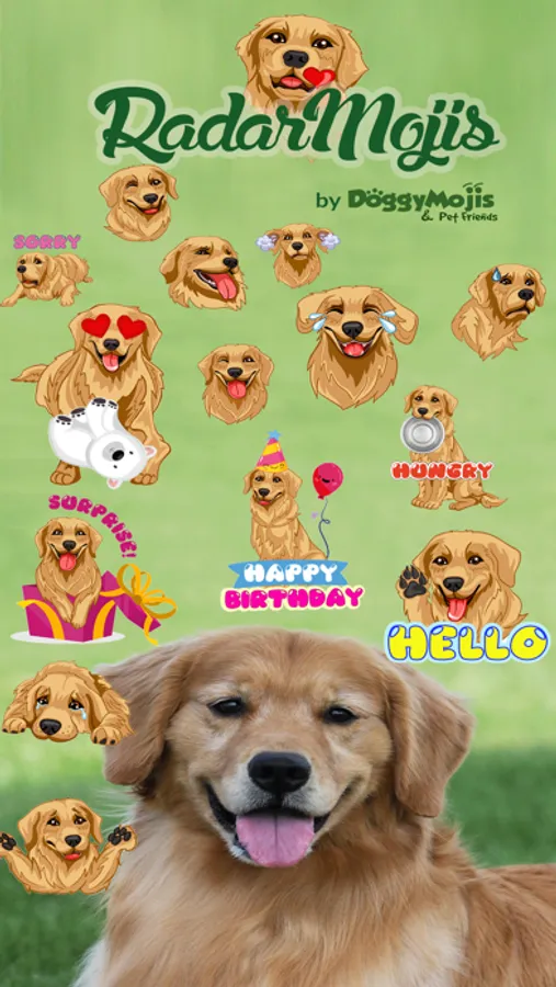 Radar is a special golden, always smiling that trademark smile and making everyone she meets happy. That’s why she deserves to have her own emojis. Her face, gestures and smile make her unique. Now you can send some love through social media or messaging.