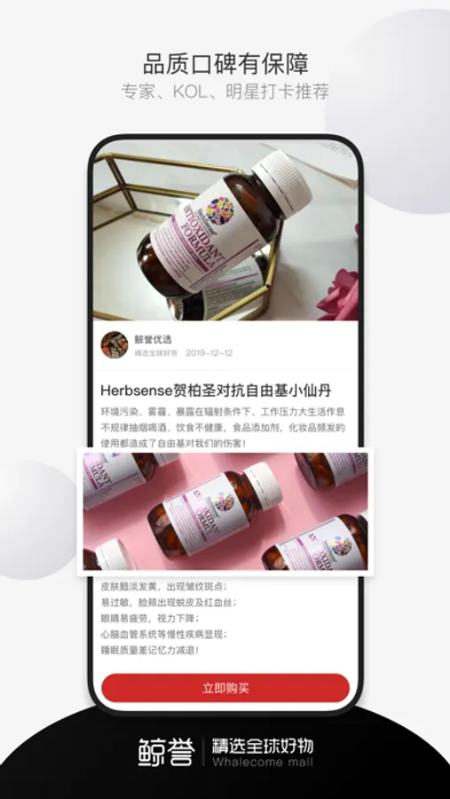 Whalecome mall鲸誉优选是选品辐射全球五大洲的跨境社交电商创业平台,拥有成熟海外跨境产品供应链系统,为全球华人提供一站式消费、优惠、创业的多维体验。