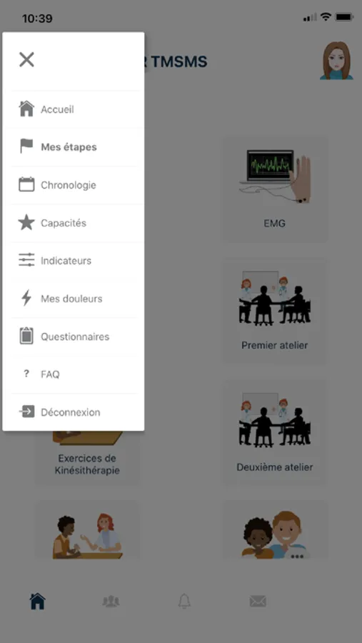 Mr Dupont souffre de douleurs à l'épaule et au poignet, il consulte un MPR à Bagnoles de l'Orne. Le médecin l'inscrit à l'atelier et lui fournit un flyer contenant un Flash Code à scanner avec son smartphone. Lors du scan, le patient renseigne un mail et un mot de passe, un compte est alors automatiquement créé sur Adocami avec une inscription à l'atelier TMSMS.