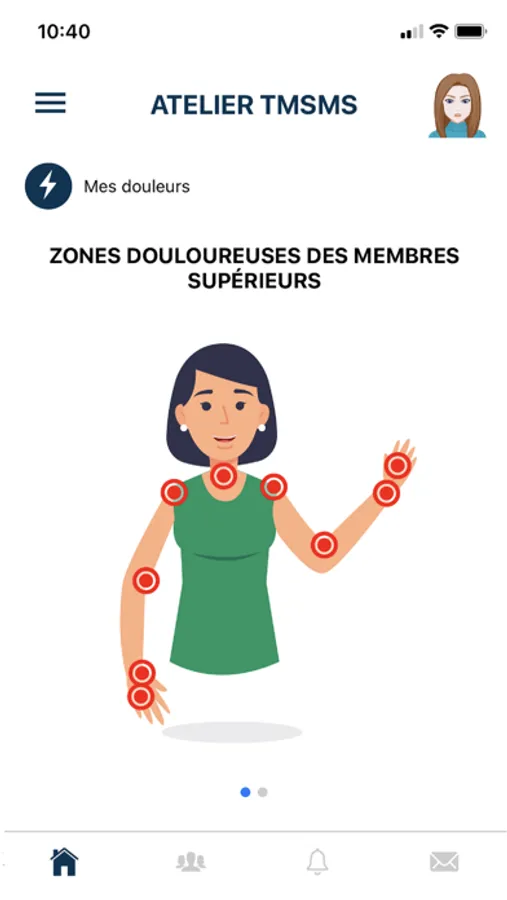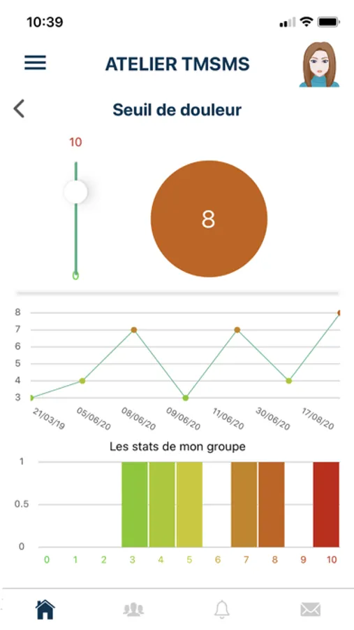 Il peut renseigner son tableau de bord afin de suivre son seuil de douleur, son évaluation personnelle de l'évolution de sa maladie... Il peut ajouter à son tableau de bord des données de sa montre connectée si le médecin estime avec lui qu'il est intéressant d'intégrer ce type de données dans son parcours de soins. En retour, son tableau de bords l'oriente vers tel ou tel exercice ou ressource pédagogique afin de répondre à l'évolution de sa situation.