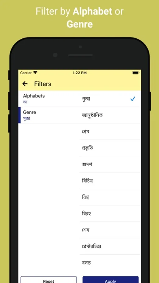 Unlike the Swarabitan book by Rabindranath Tagore, where you can view only the notations (swaralipi). In Gitabitan Plus, you get the lyrics, notations and the ability to playback the notes on your desired scale and tempo.