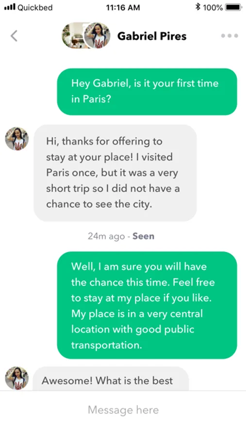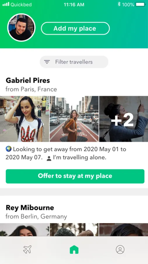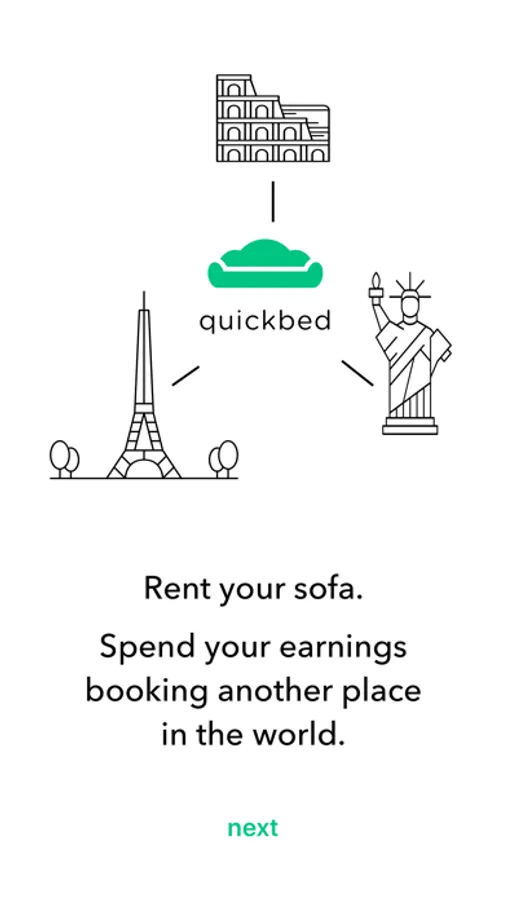 Quickbed opens borders and gives you the ability to swap your bed into another anywhere in the world. Letting travellers sleep at your property helps you to collect virtual money which can be used to book another bed or apartment in your desired location.