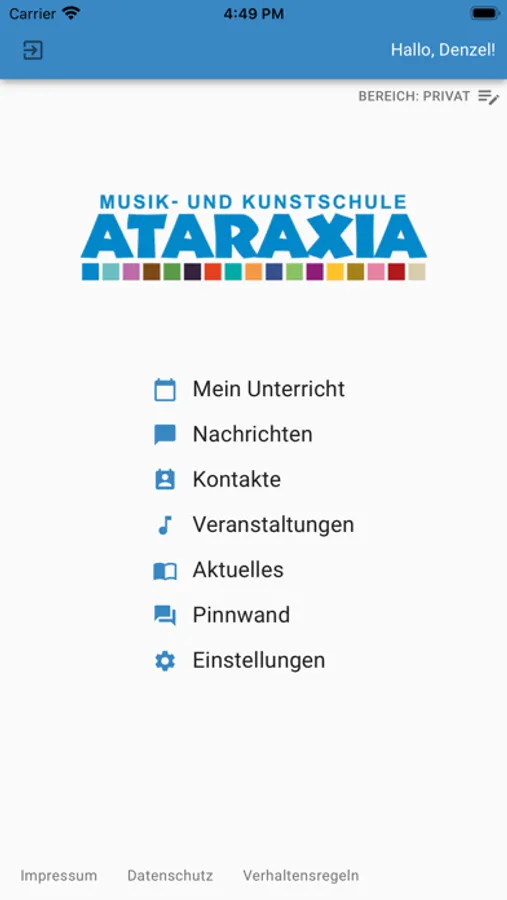 Mit der ATARAXIA-App bleiben Sie sicher und bequem in sämtlichen Belangen rund um die Musik- und Kunstschule ATARAXIA auf dem Laufenden.