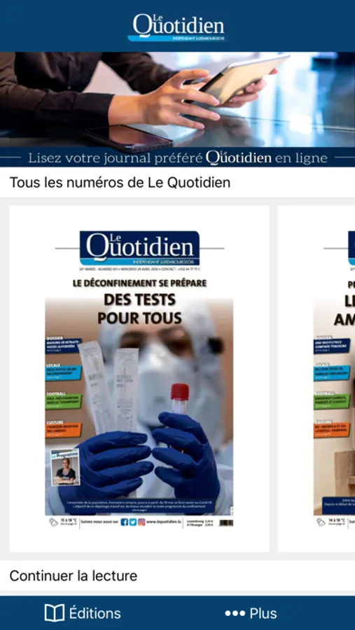 Cette app est gratuite, réservée aux abonnés aux formules E-Paper, Weekend ou à l'édition papier du Quotidien.
