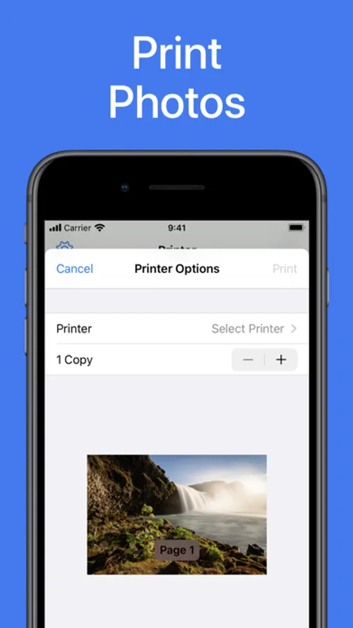 This app makes it really easy for you to print from your iPhone or iPad. Just select the document or photo from your camera that you want to print, select your printer and send the print job. You can print all sorts of different documents: PDF, Word DOC, Excel XLS, PowerPoint PPT, Photoshop PSD, JPEG, PNG, BMP, TIFF, GIF and more.