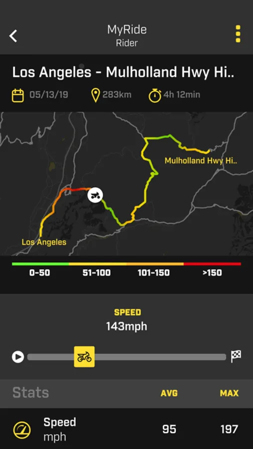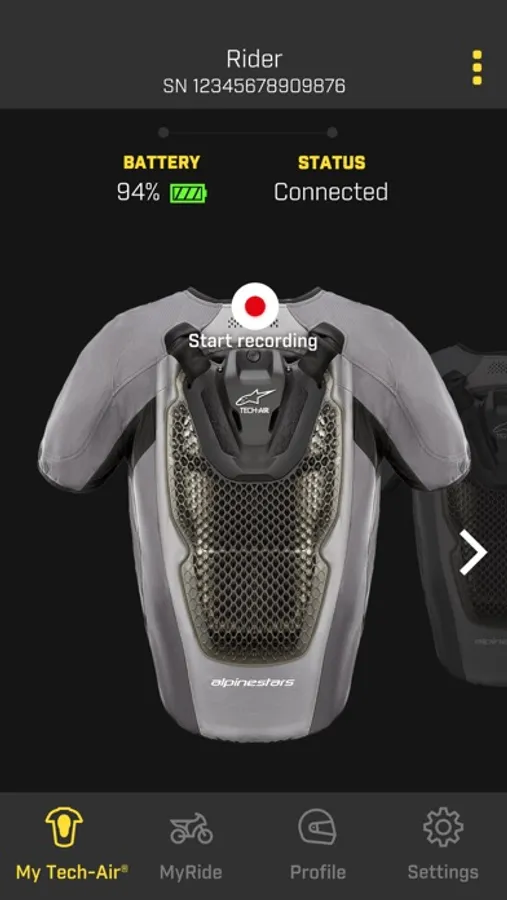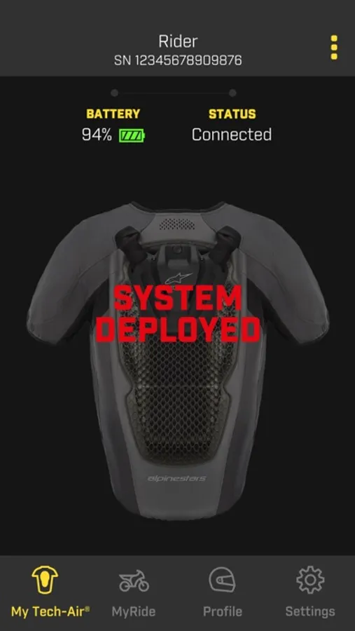 Packed with a variety of useful features, the App lets you easily register your Tech-Air® 5 Airbag System and monitor its status and battery life, as well as tracking the details of your ride. The App uses Bluetooth Connectivity to access the System’s data. Using the MyRide feature, riders can record location and speed continuously during a ride. Relive your ride and visualize your average and top speeds at any point along the route by zooming in on the map. MyRide gives motorcyclists the ability to record unlimited motorcycle rides and build up a complete library of individual trips, so you can easily retrace your trips and remember the great riding moments.