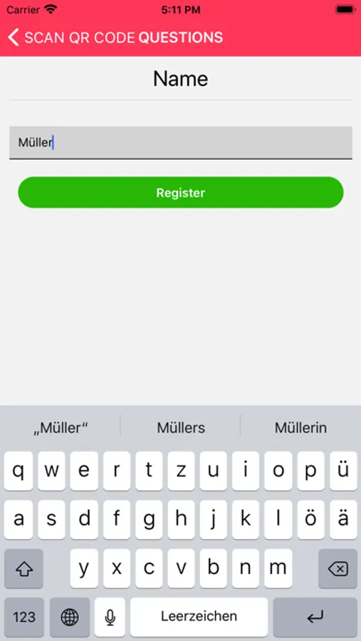 - der individuelle Code mit den Kundeninformationen wird in der App generiert