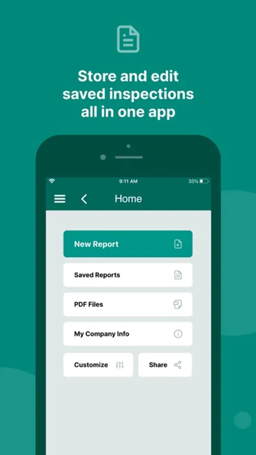 The app collects photos, signatures and dates, and submits the inspection report into a convenient PDF file that can be shared with your clients via email or other means available on your device.