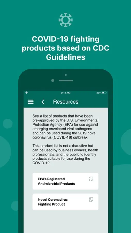The app also contains a list of products that have been pre-approved by the U.S. Environmental Protection Agency