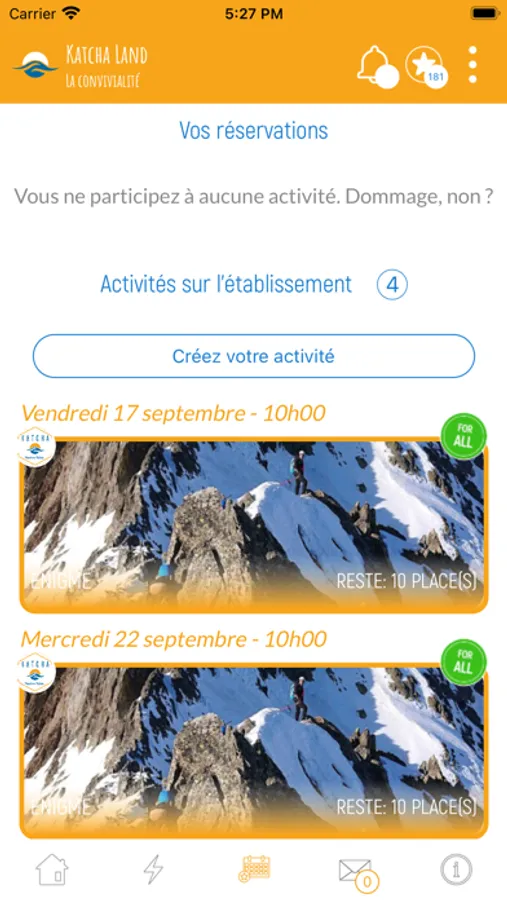 Télécharger Katcha avec le code établissement fournit par le mail d'invitation ou sur place et faite de votre séjour une véritable destination vacances !