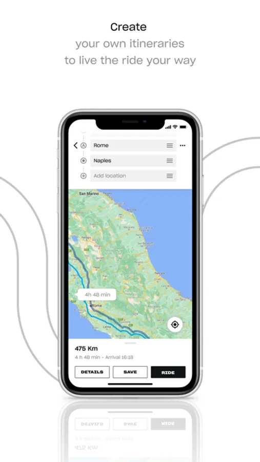 The second section of MV Ride, Itineraries, is based on the Here maps platform, a service provider preferred by major automakers for its precision and constant updating. Plan your next itinerary, save and share it with your fellow MV Agusta friends.