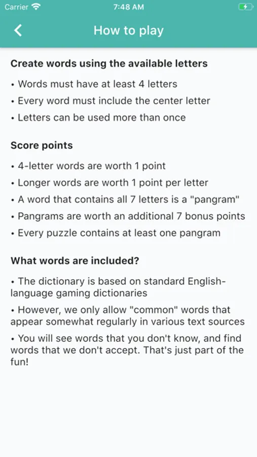 Find all the words you can make with 7 letters. Play the daily game or compete against your friends. Create a game room and share the invite code with your friends to have them join you in custom games with custom time limits, different dictionary sizes, and a realtime leaderboard!
