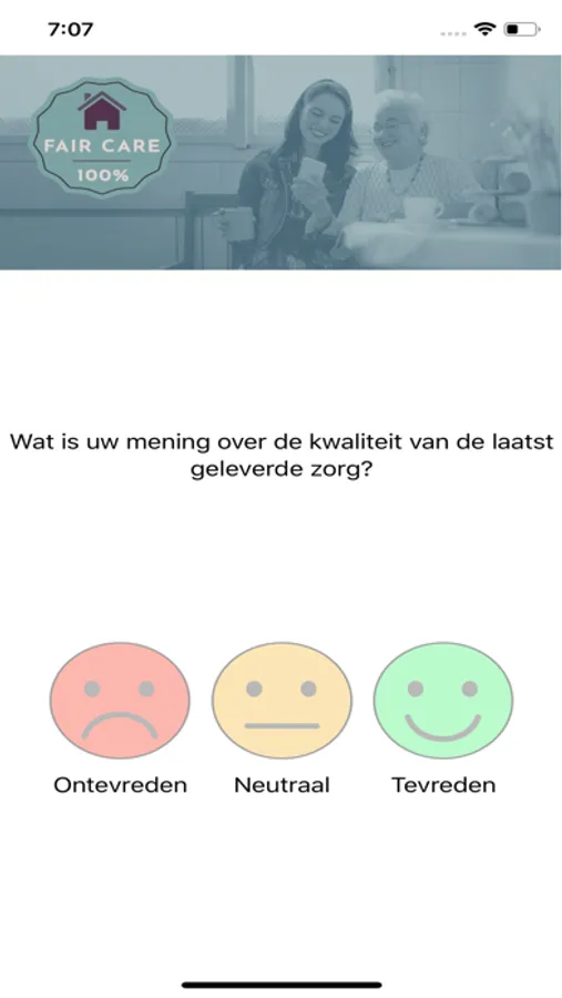 Op een zeer eenvoudige manier kan de feedback worden gegeven: Wanneer het Fair Care kaartje wordt gescand, kunt u uit een drietal te selecteren smileys aangeven hoe tevreden u bent. Deze smileys: tevreden, neutraal of ontevreden. Deze waardering wordt dan naar het Fair Care systeem gestuurd waar de ingegeven waarde wordt gekoppeld aan het laatste zorgmoment.