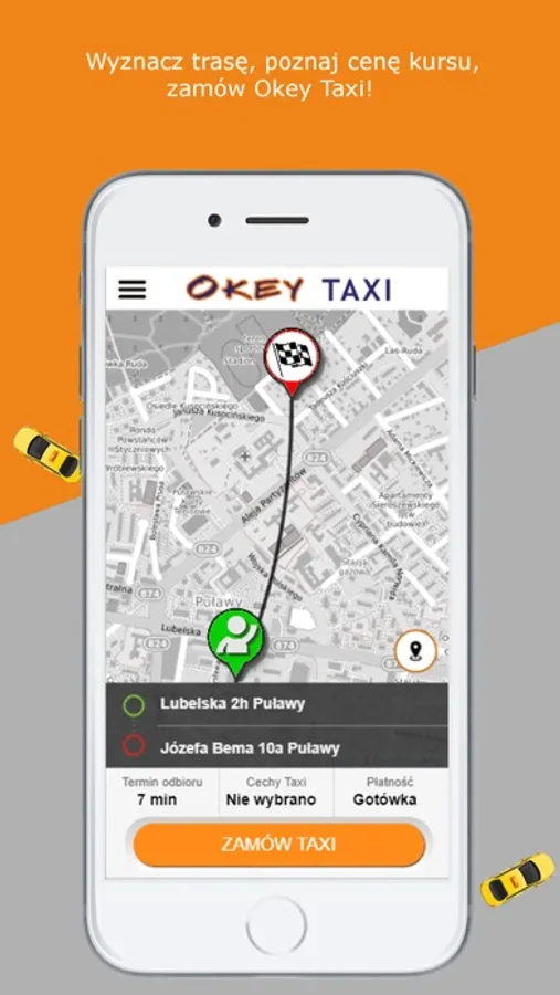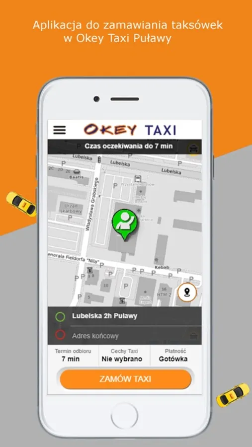 Bezpłatna aplikacja służąca do zamówienia taksówki w korporacji OkeyTaxi 81 194 64 w Puławach.