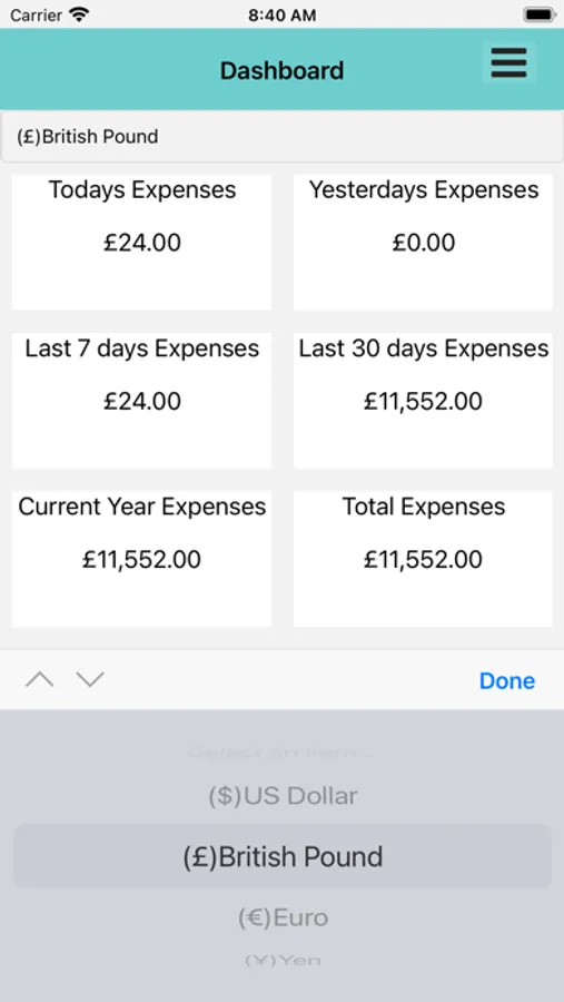 - Visual dashboard of expense claims made within 1 day, 7 days, 30 days and the current year.