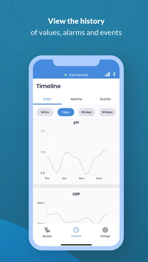 - Intelligent guidance for carrying out maintenance operations: pH and ORP sensor calibration, electrolysis test, temperature and salt adjustment,