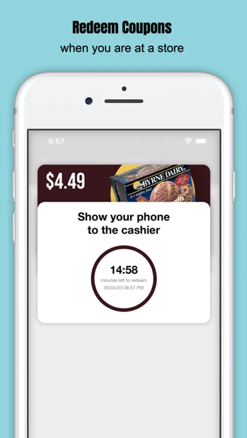 Simply tap the redeem button and show your phone at purchase to redeem your coupons.