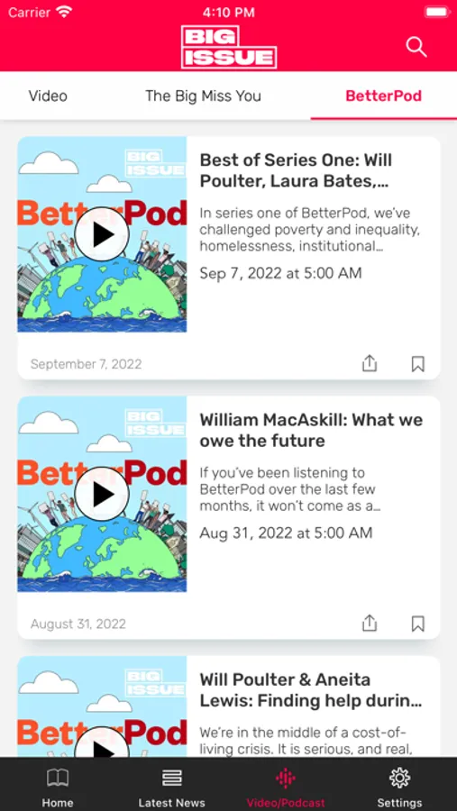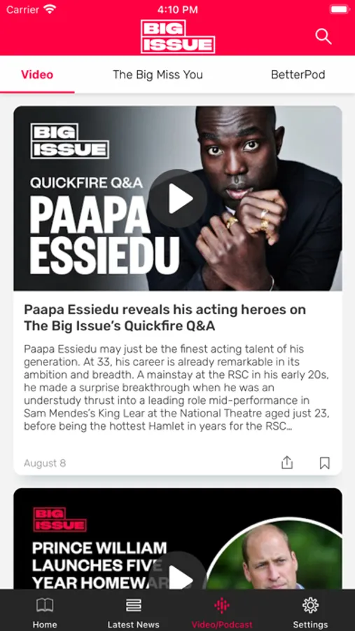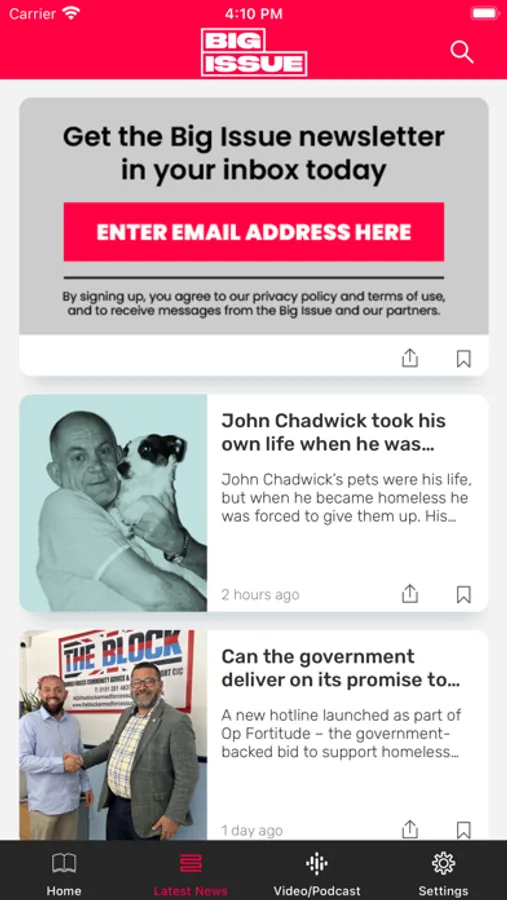 The Big Issue app provides access to our award-winning weekly publication PLUS our new Big Community channel which provides uplifting and inspiring stories about people and businesses coming together to support the most vulnerable in society.