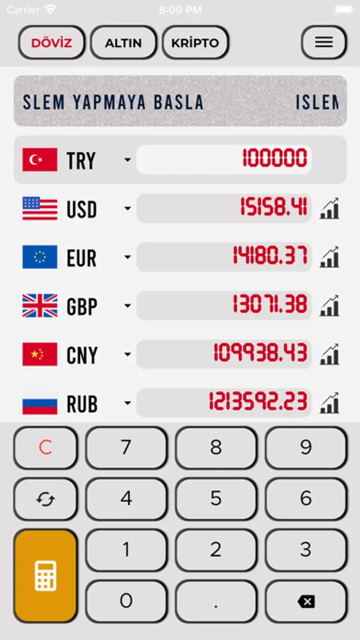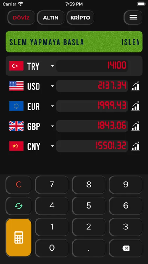 - Tüm altın çeşitlerini birbirine dönüştürebilir ve anlık fiyat grafiklerini görebilirsiniz.