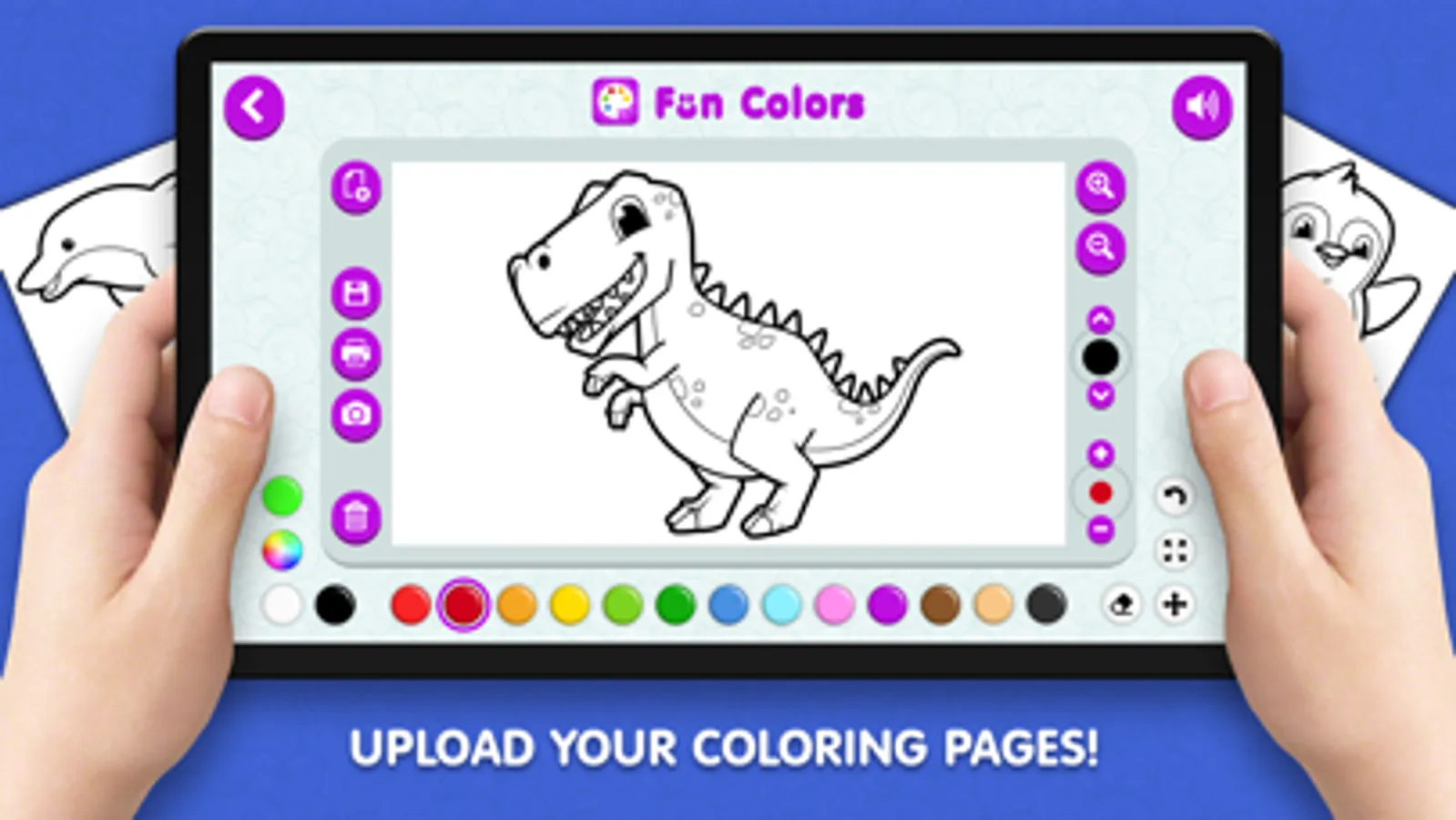 In this painting game you will find various categories of coloring pages and a mode for drawing! In addition to an endless palette of colors and a variety of paint brushes in Fun Colors there is an ability to upload your own images or photos and draw on it!