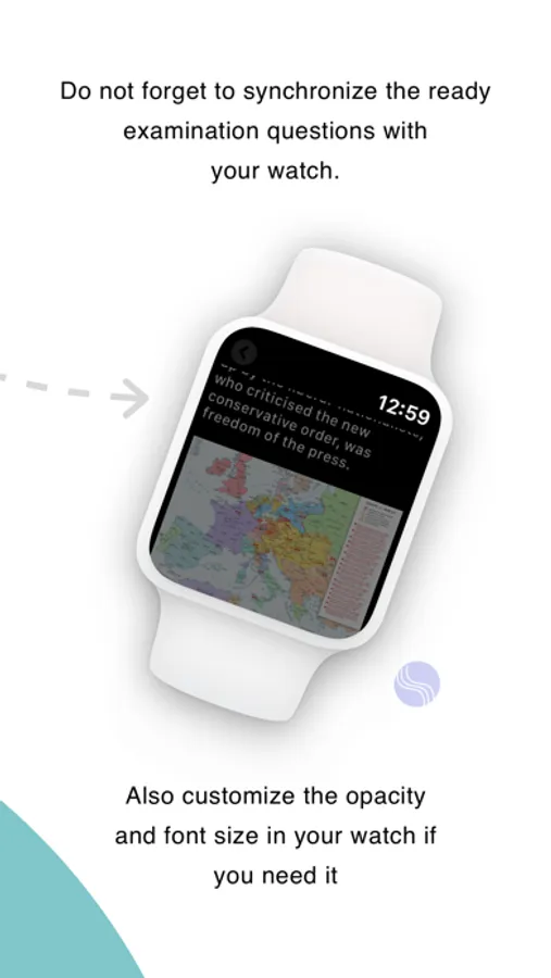 The main thing, do not forget to sync you iPhone app with your Apple Watch; it can be done by a single button press. EZsheet settings allow adjusting the font transparency and size for learning the answers comfortably anywhere: in a cafe, in a bus, or even in your bed at home!