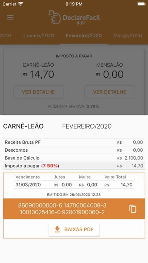 Para emitir o DARF de Carnê-Leão você não precisa saber detalhes das regras de cálculo, basta ter em mãos os rendimentos e despesas dedutíveis. Após gerar a guia, é só fazer o pagamento no seu banco. Além disso, a emissão do DARF com o DeclareFacil elimina o processo burocrático envolvido na utilização do Sicalc online, sistema da Receita Federal.