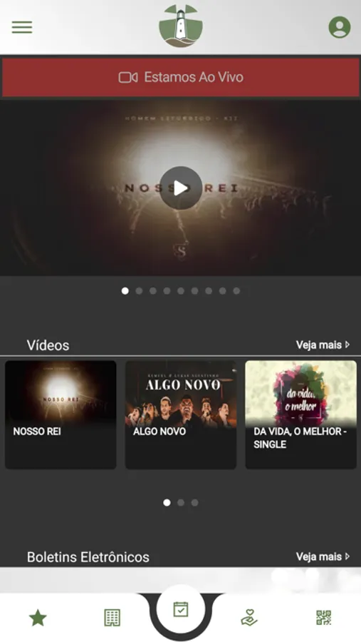 * "Conteúdos (Áudio/Vídeo): Permite visualizar e ouvir conteúdos da Igreja disponíveis no App;