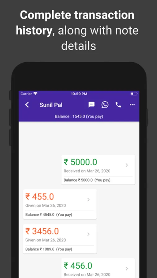 PhoneKhata is safe, secure & reliable replacement of your Udhar Bahi Khata. The app helps in managing credit/debit or account ledger book for small and medium businesses like a general store, pan shop or tea stall. Udhar khata ensures that money related information is made available all the time. Udhar Khata/Credit Debit App is very simple to use and can be used by anyone knowing Hindi, English, Punjabi or Gujarati.