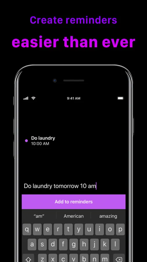 Type for example "Do laundry tomorrow 10 am" and it will create a reminder "Do laundry" for tomorrow at 10 am.
