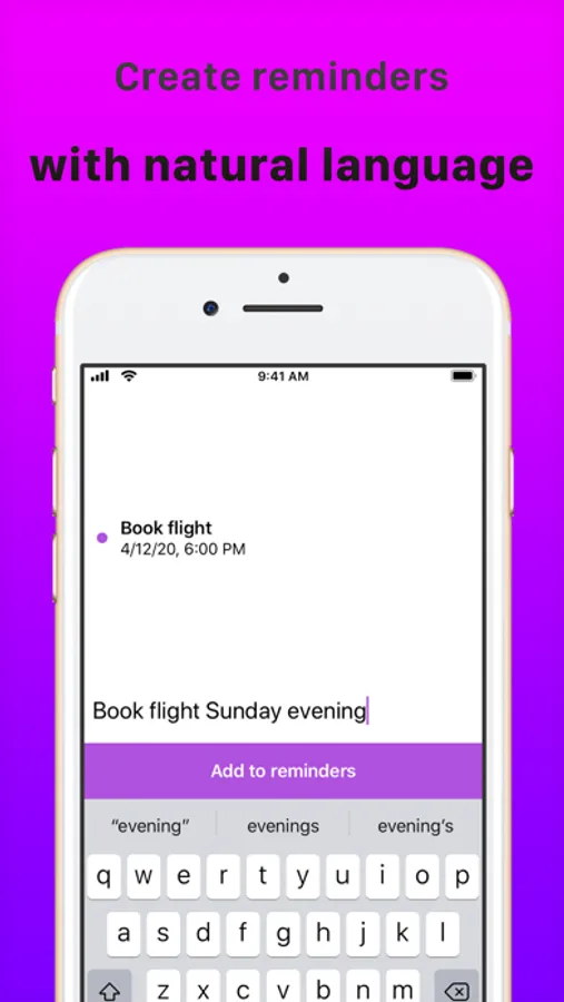 FastRemind is an easy way to create reminders in seconds. Just open the app and type what and when you want to be reminded in natural language. FastRemind will understand at what time you want to set the reminder and adds it to your existing Apple Reminders, which syncs to all your other devices.