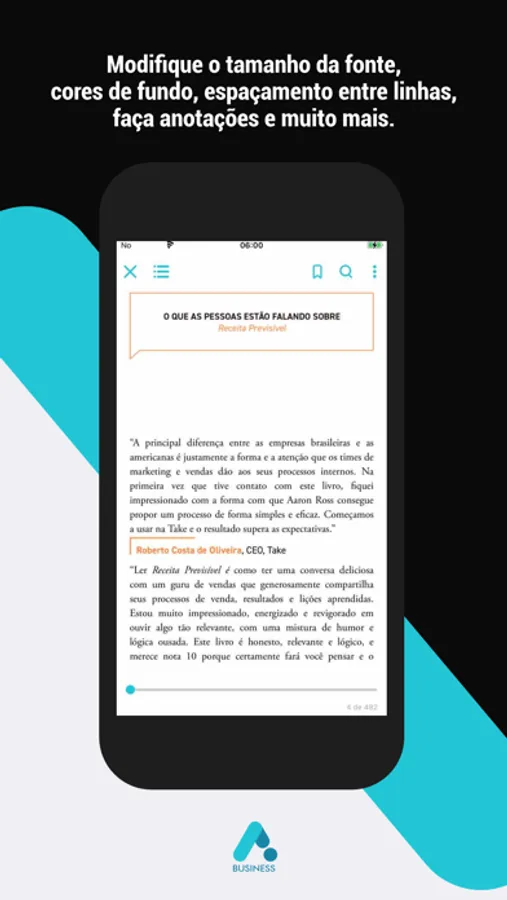 - As funcionalidades de personalização deixam o momento de leitura muita mais completo, fácil e prático.