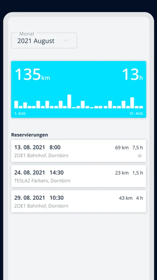 Wähle über die Fahrzeugliste ein verfügbares Fahrzeug an deinem gewünschten Standort in Vorarlberg aus und mache eine Reservierung.