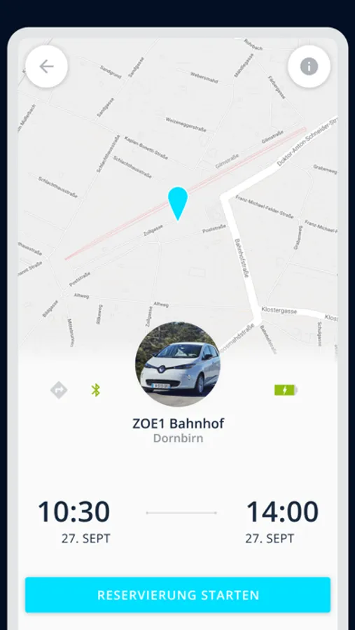 Starte deine Reservierung ganz unkompliziert über die App. Bei Zwischenstopps und am Ende der Reservierung das Fahrzeug wieder per App schließen.