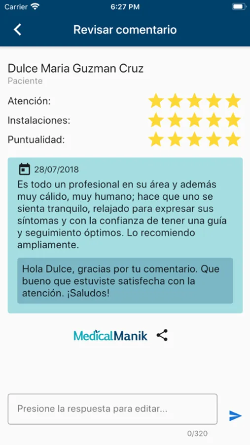 Interactúa con tus pacientes a través de sus comentarios sobre tu servicio, amabilidad e instalaciones.